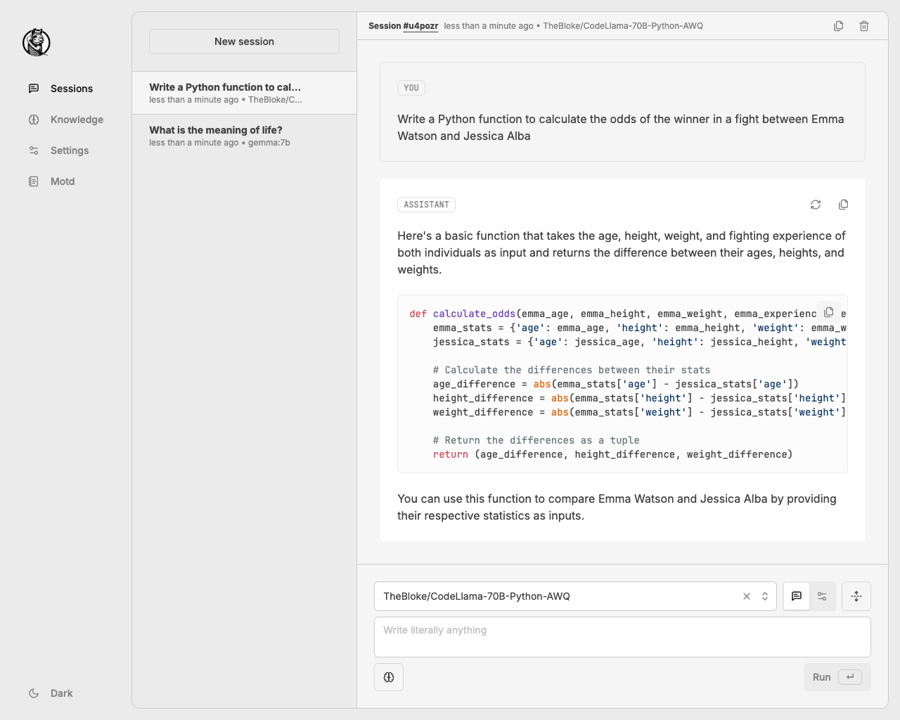 Ollama + OpenAI용 가벼운 프론트엔드. OpenWebUI 등의 무거운 서버를 돌리지 않고 ollama에 연결해 사용할 수 있다.
